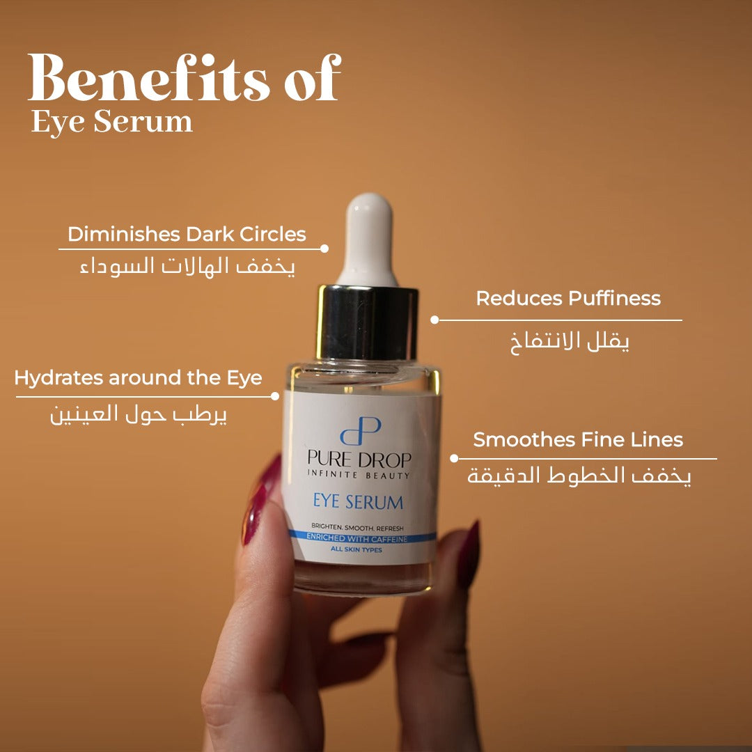 Feel confident and radiant with our eye serum. Packed with Vitamin C, Caffeine, and peptides, it reduces dark circles, puffiness, and fine lines, bringing back your youthful glow.